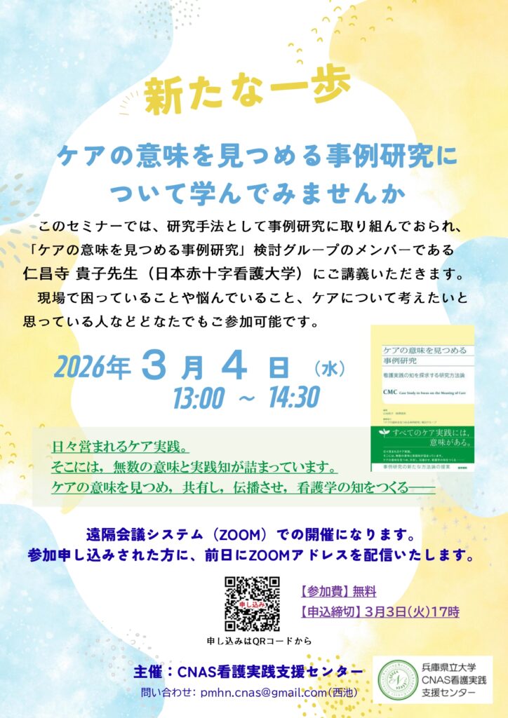 事例研究セミナー「ケアの意味を見つめる事例研究 」開催のご案内